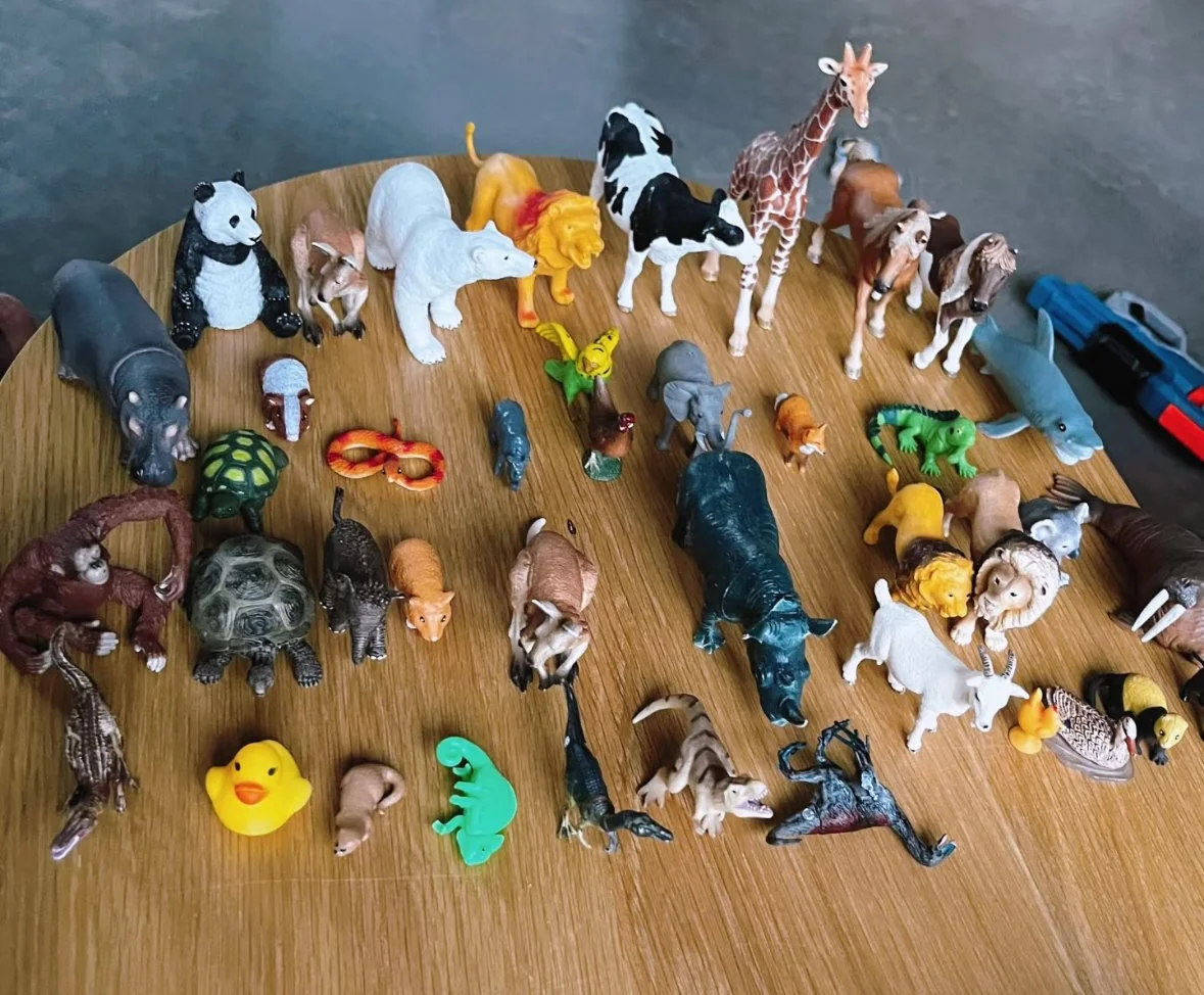 A child creates a family through play—These animal figures can become symbols in a child’s story: who feels close, who feels distant, and what might need to be kept contained.